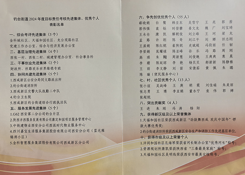 近日,灃西集團子公司——陜西灃西服務發展有限公司(以下簡稱“灃西服務”)北部回遷片區康定和園項目榮獲釣臺街道黨工委、釣臺街道辦事處頒發的2024年度目標責任考核“服務發展先進集體”榮譽稱號,標志著灃西服務在“紅色物業”黨建品牌建設與服務品質提升方面實現了雙重突破為構建和諧、文明的社區環境,貢獻了力量贏得了良好的社會聲譽和口碑?。