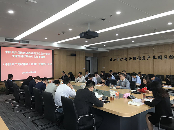 9月20日下午,信息產業園公司召開專題學習會,組織全體黨員干部學習新修訂的《中國共產黨紀律處分條例》。