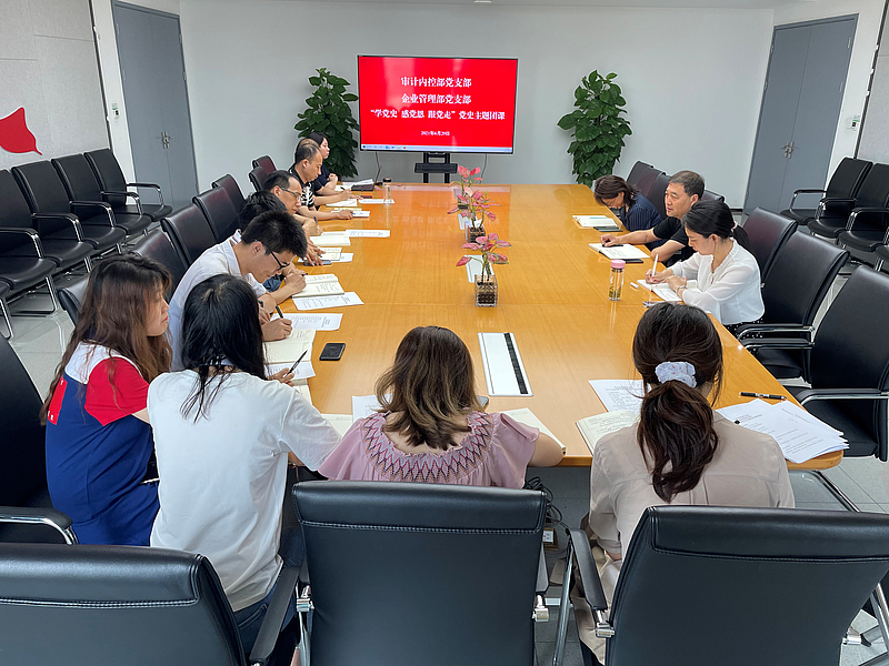 為進一步提升基層黨組織建設(shè)力量和黨建工作質(zhì)量,6月29日,審計內(nèi)控部黨支部與企業(yè)管理部黨支部開展支部共建,以黨建帶團建,召開“傾聽員工心聲  加強人文關(guān)懷”主題黨日活動暨“學(xué)黨史、感恩黨、跟黨走”黨史主題團課,全體干部員工就集團公司內(nèi)部控制建設(shè)情況、制度建設(shè)情況、生活感受等方面發(fā)言交流,并深入討論。