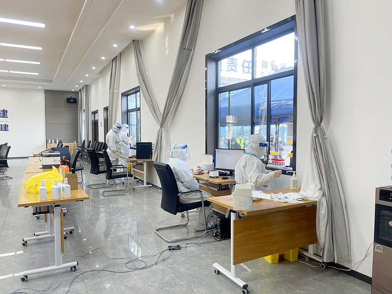 在房建項目現場,由房建項目部19人組成疫情防控青年突擊隊,赴一線開展各項防疫工作,督促各參建單位啟動疫情防控專項方案,協助醫護人員完成核酸采樣工作,并對每輪核酸檢測結果進行統計、審核、報送。