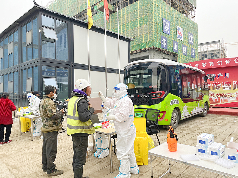 自本輪疫情暴發以來,灃西集團始終將項目工地疫情防控工作作為重點工作之一,扎實履行工作職責,夯實各單位任務責任,抽調人力物力投入到項目工地疫情防控一線。嚴格按照新城疫情防控指揮部要求,第一時間召開疫情防控專題部署會,成立建設工程項目疫情防控指揮組織機構,形成1個專項工作組、3個采樣小組、7個采樣點、53個項目部為一體的工作機制,由集團專職部門總體統籌協調,各項目部門、有關子公司分別組織落實,施工、監理單位全力配合的疫情防控體系,確保安全高效完成53個項目約7000余名工地務工人員疫情防控及核酸采樣任務,筑起疫情防控“堅固防線”。