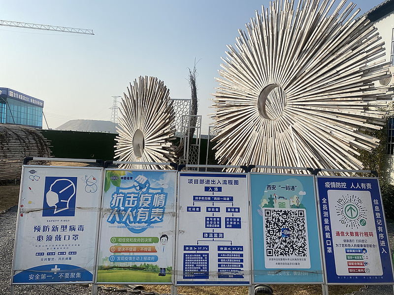 在秦創原生態科創島項目項目現場,全面落實封閉管理措施,組織施工單位實行分單元模塊化管理方式,采取工人錯峰就餐、分批次核酸檢測等多項措施,并積極做好疫情防控物資儲備及發放工作。