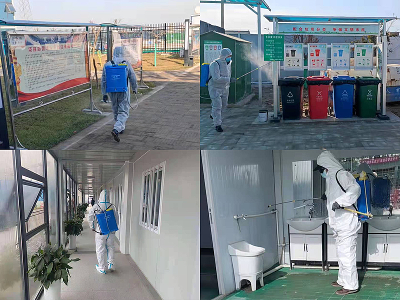 配齊防疫帳篷、體溫計和消毒劑等防疫物資,每日安排專人對辦公區域、門禁區等公共區域和住宿區進行消殺,并張貼消毒記錄表,做到病毒消殺無死角。