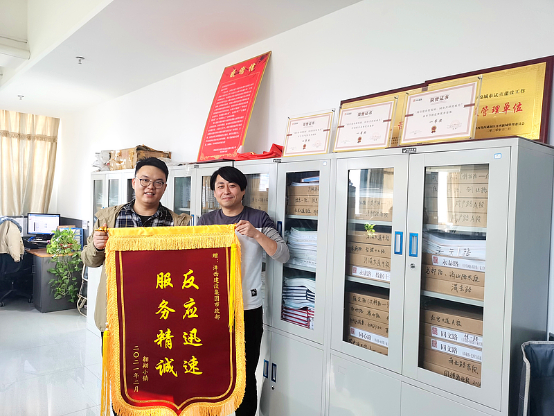 2020年8月,為配合翱翔小鎮(zhèn)項目建設,灃西集團主動履行服務職責,及時了解企業(yè)需求,多次前往現(xiàn)場實地考察,采用一路一方案的方式為企業(yè)提供定制化服務,先后建成了翱翔一路、翱翔二路、翱翔三路、翱翔四路、鯤鵬路、天元路等9條市政配套道路,為翱翔小鎮(zhèn)的發(fā)展提供了高效暖心的服務。優(yōu)質(zhì)的服務得到了企業(yè)充分肯定,2021年2月,翱翔小鎮(zhèn)項目送來一面寫有“反應迅速服務精誠”的錦旗,對灃西集團提供的高效服務表示感謝。