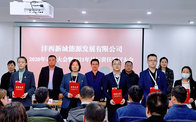 大會總結(jié)回顧了2020年取得的成績,對2020年度工作中涌現(xiàn)出的優(yōu)秀部門、優(yōu)秀員工、優(yōu)秀黨員以及做出突出貢獻(xiàn)的員工進(jìn)行了表彰。會上,能源公司董事長、總經(jīng)理劉洪濤代表公司與各部門、各子公司主要負(fù)責(zé)人簽訂年度目標(biāo)責(zé)任書。