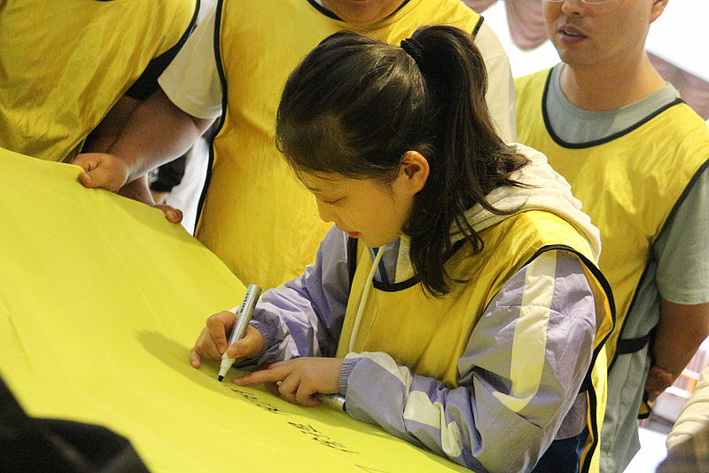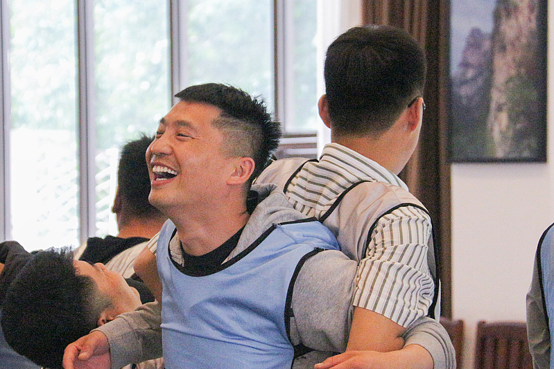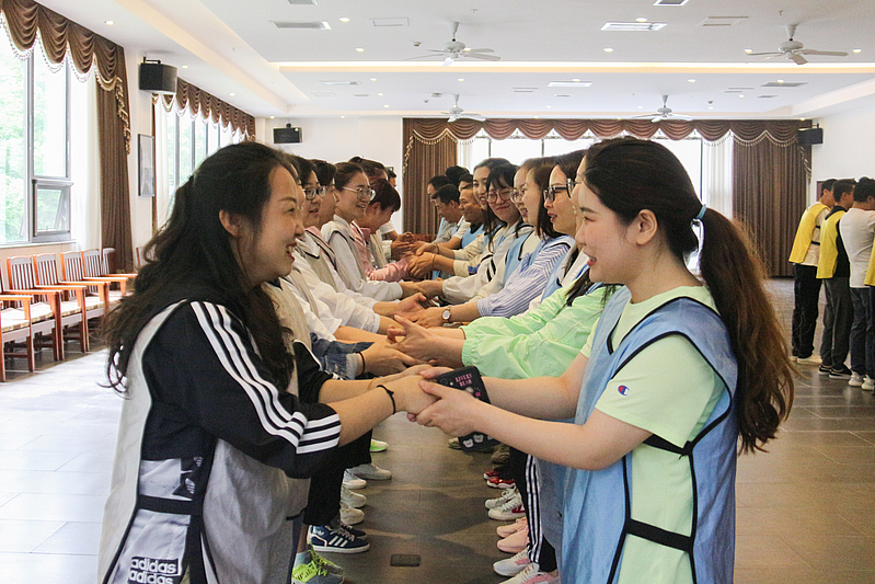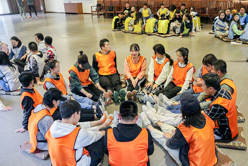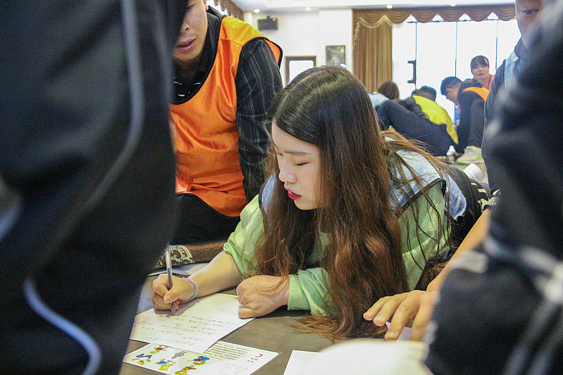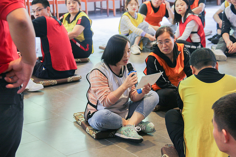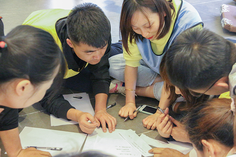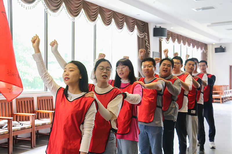 培訓(xùn)開營儀式后,首先是破冰分組,隨后各項(xiàng)活動(dòng)循序漸進(jìn)。小分隊(duì)們領(lǐng)取了各自的專屬顏色馬甲,開始寫隊(duì)名、唱隊(duì)歌,“灃華正茂”隊(duì)、“西北狼”隊(duì)……各小分隊(duì)盡展風(fēng)采,嘹亮的口號(hào)聲此起彼伏。