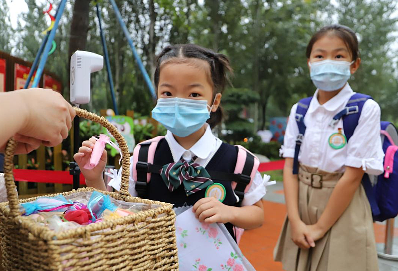 為了迎接同學(xué)們“回家”,西咸灃西第一小學(xué)、西咸新區(qū)灃西新城實(shí)驗(yàn)學(xué)校,早早就做好了準(zhǔn)備,防疫演練、校園消殺、常態(tài)防疫不放松,學(xué)生們按照引導(dǎo)佩戴口罩,一米間距,體溫檢測,整齊有序進(jìn)入校園。