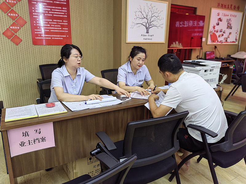 現(xiàn)場(chǎng)簽到、房屋分配、繳納維修基金、填寫業(yè)主檔案、系統(tǒng)信息錄入......每個(gè)環(huán)節(jié)都井然有序。高效的背后,是物業(yè)公司踐行細(xì)節(jié)與標(biāo)準(zhǔn),提升業(yè)主收房體驗(yàn)感的表現(xiàn)。小區(qū)大門放置紅色拱門,恭祝業(yè)主喬遷之喜;物業(yè)前臺(tái)懸掛“恭迎二期業(yè)主回家”橫幅,營(yíng)造良好收房氛圍;在單元門口張貼海報(bào),提供暖心服務(wù)。每個(gè)工作人員也都以飽滿的精神狀態(tài)投入工作。“您好,歡迎回家”是交付現(xiàn)場(chǎng)最常聽見的一句話,也是最暖心的一句話,為所有交付業(yè)主帶來(lái)親切的體驗(yàn)。
