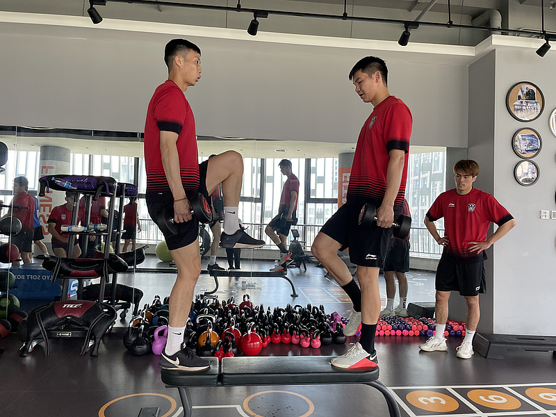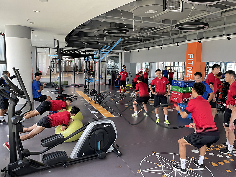 8月29日,在云谷二期健身房中,陜西長安聯(lián)合足球俱樂部的球員們正在緊鑼密鼓訓(xùn)練備戰(zhàn),準(zhǔn)備迎接即將到來的2023中冠聯(lián)賽總決賽。