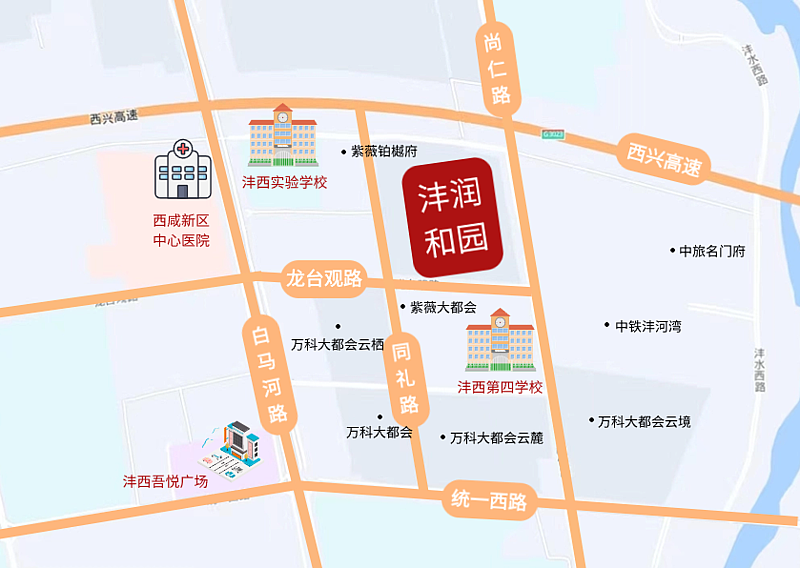 周邊市場(chǎng):作為灃潤(rùn)和園小區(qū)配套底商,周邊1-2公里內(nèi)小區(qū)住宅密集,西側(cè)有西咸新區(qū)中心醫(yī)院、灃西實(shí)驗(yàn)學(xué)校,南側(cè)為灃西第四學(xué)校,區(qū)域人口基數(shù)大,商業(yè)開(kāi)發(fā)成熟度較高。
