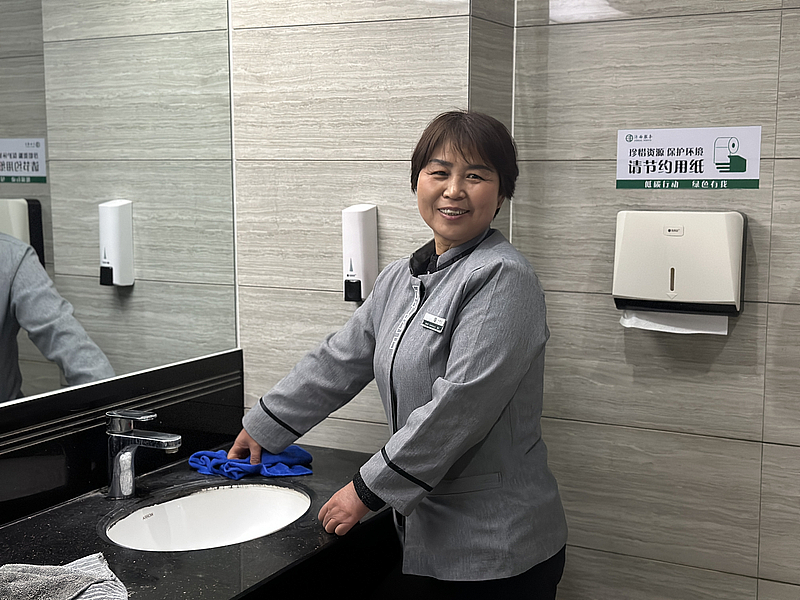 保衛家園潔凈的“衛士”,用腳步踏尋每一個角落,用雙手擦拭每一塊瓷磚,用最真摯的熱情,做好最普通的工作。