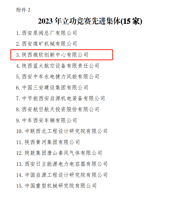 近日,西安市機械冶金建材工會關于表彰 2023 年“十佳機械工匠人才”立功競賽先進集體、先進班組、先進個人名單正式揭曉,經基層推薦、初審初評、社會公示和綜合評定,陜西微軟創新中心有限公司(以下簡稱“陜西MIC”)工會在本次表彰中喜獲立功競賽先進集體獎。