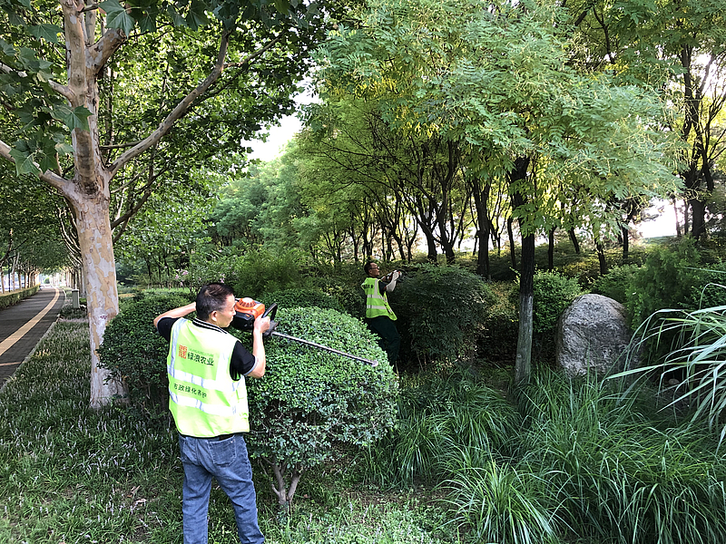 修剪抹芽。嚴格按照疏枝、整形、除害等養護標準,對行道樹、喬木灌木、綠籬色帶、地被花卉植物等進行精細化修剪,去除樹木折斷枝、病蟲枝及下垂枝,美化樹冠造型,確保綠化樹形優美,綠籬、草坪整齊劃一,同時及時清理清運枯枝敗葉等修剪物,進一步提升綠化景觀的觀賞性。