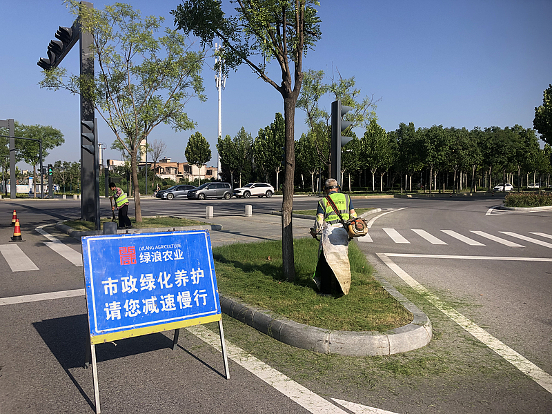 人文關懷。為避免高溫作業,西咸綠浪農業將養護工作時間調整為早班和晚班,每日作業前對養護隊伍進行崗前安全教育,逐人測量血壓,全員配備反光背心、護目鏡、手套、口罩、藿香正氣水等全套作業用品,并規范安全警示牌、錐形桶擺放等,確保施工作業安全。同時,不定期舉行機械安全規范操作、園林植物防火等培訓演練,有效提升隊伍專業技能和應急能力,切實打造訓練有素、反應迅速、專業水平高、戰斗力強的綠化養護隊伍。