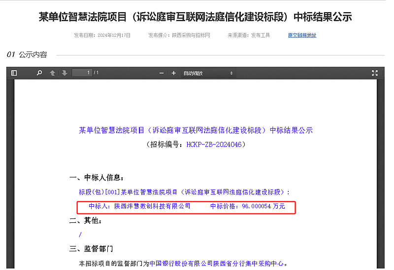 近日,灃西科創子公司灃慧數創成功中標某單位智慧法院(訴訟庭審互聯網法庭信化建設標段)公開招標項目,標志著灃慧數創在弱電智能化市場項目承接方面再次取得新突破。