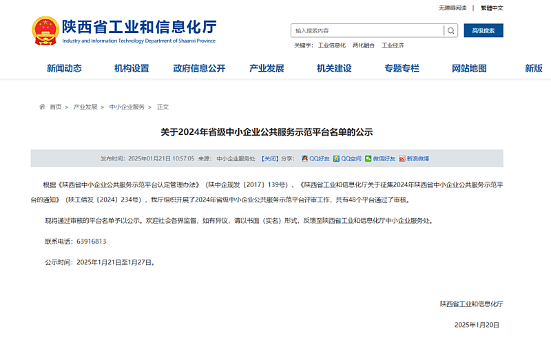 陜西省工業(yè)和信息化廳公布了