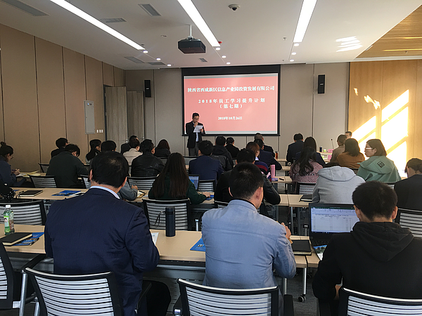10月26日,信息產業園公司聯合園區非公黨支部組織開展2018年第七期員工學習提升計劃暨云谷大講堂活動?;顒友埼靼搽娮涌萍即髮WMPA教育中心李雄軍博士,作“以《曾胡兵法》看園區發展”的主題講座,公司干部員工及企業代表60余人參加培訓活動。