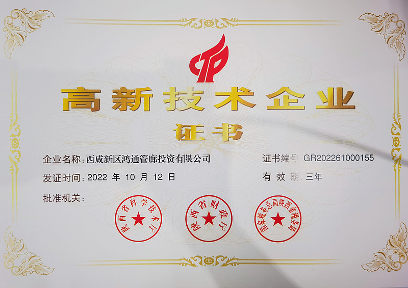 近日,陜西省科技廳公布陜西省2022年第一批高新技術(shù)企業(yè)名單,灃西新城綜合管廊的運營服務(wù)者,灃西集團投資公司全資子公司——西咸新區(qū)鴻通管廊投資有限公司,光榮上榜!五位一體多項突破在管廊公司的“精心守護”下,灃西新城綜合管廊穩(wěn)步提升,實現(xiàn)了運營里程、運營收入、安全運維和運維模式四個突破。堅持智能化管理,首次將區(qū)塊鏈技術(shù)應(yīng)用于管廊機器人智能巡...