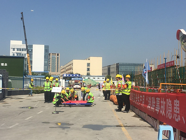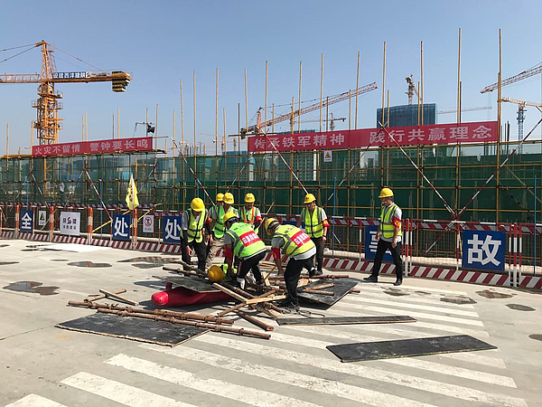 本次演練針對(duì)高支模坍塌事故和有限空間作業(yè)事故開展應(yīng)急救援,現(xiàn)場(chǎng)分別模擬高支模架體突然發(fā)生坍塌,兩名作業(yè)人員被鋼管、模板埋壓的場(chǎng)景和由于作業(yè)人員違章操作,在未經(jīng)審批的情況下,下井作業(yè)突然暈倒的場(chǎng)景,事故發(fā)生后,現(xiàn)場(chǎng)立即啟動(dòng)應(yīng)急預(yù)案,在應(yīng)急指揮部統(tǒng)一調(diào)度下,各應(yīng)急救援組各司其職,分頭行動(dòng)開展應(yīng)急救援工作。經(jīng)過緊張救援,遇險(xiǎn)人員被救出,并送往醫(yī)院進(jìn)一步治療。現(xiàn)場(chǎng)救援人員隨即全部撤離,各項(xiàng)演練任務(wù)順利完成。