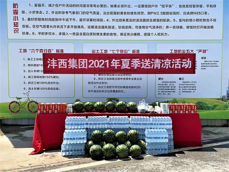 7月6日至7日,灃西集團開展夏季慰問一線“送清涼”活動,集團領導班子成員分別帶隊深入在建項目,向戰高溫、斗酷暑的一線員工和勞務工人送去清涼解暑的飲品、藥品、水果等防暑降溫物資,表達集團對一線工作者的崇高敬意和親切問候。