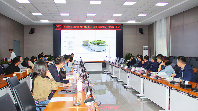 會上,規劃設計單位分別對西部科技創新港A區04、05、09單元景觀設計方案進行匯報,與會人員從風格定位、功能區劃分、景觀結構、種植設計、亮化效果、空間布局等方面深入交換意見,充分融合海綿城市建設、綠色建筑、能源、市政、道路等多方面因素,就景觀設計、業態布局、人流導向、商業氛圍等方面進行開放性討論,并提出針對性修改意見。