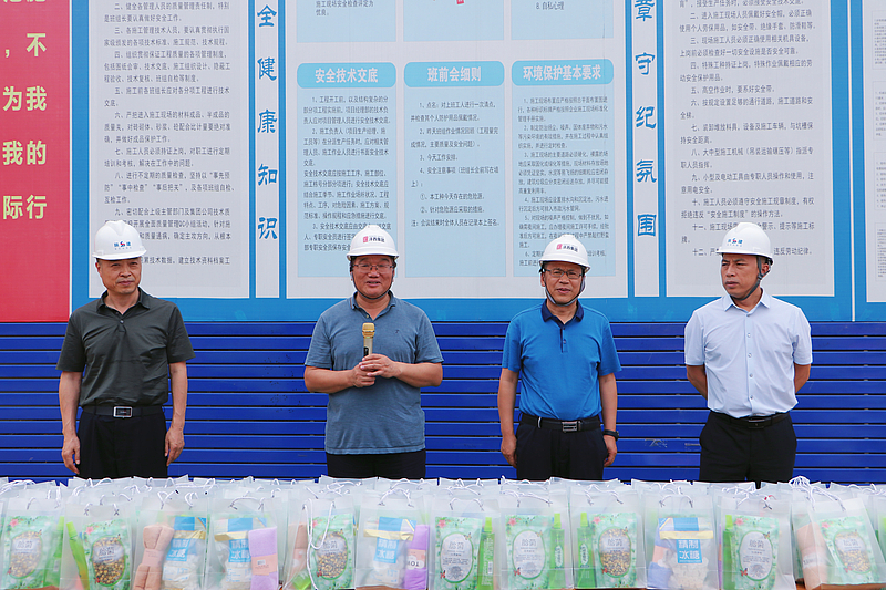 隨后,楊建柱一行將精心準(zhǔn)備的涼茶、西瓜、冰袖等防暑降溫物資送到堅守在開發(fā)建設(shè)和管理一線的勞動者們手中,對大家在高溫天的持續(xù)堅守和辛勤勞動表示感謝。